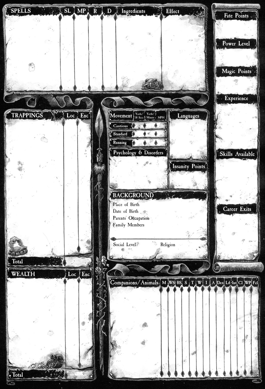 Modified and personalised character sheet (as a JPG file) for use with the alternate Ward-hammer rules above.
